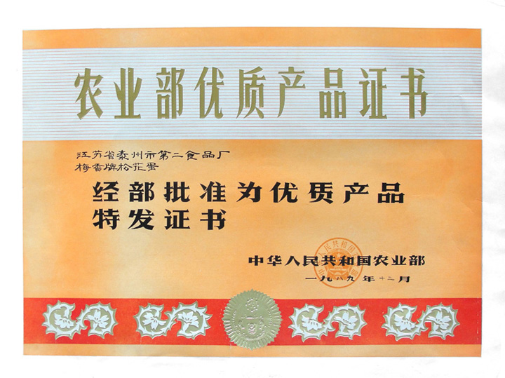 農(nóng)業(yè)部優(yōu)質(zhì)產(chǎn)品證書