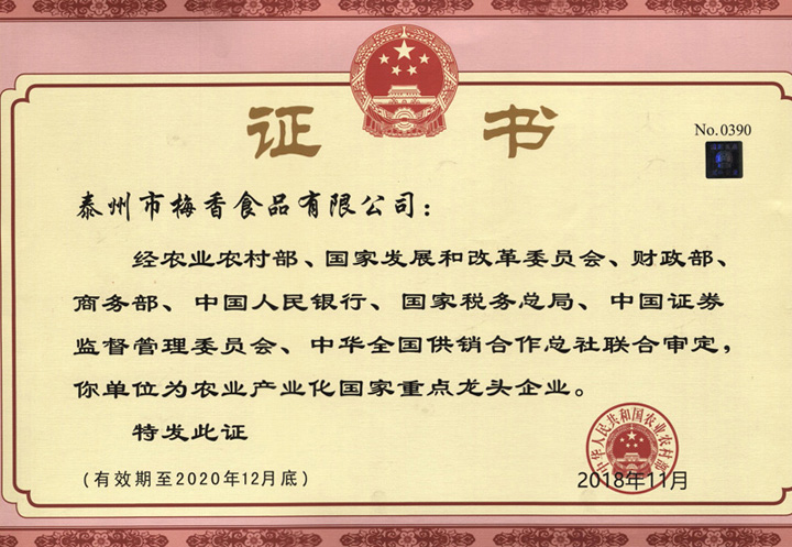 農(nóng)業(yè)產(chǎn)業(yè)化國家重點(diǎn)龍頭企業(yè)